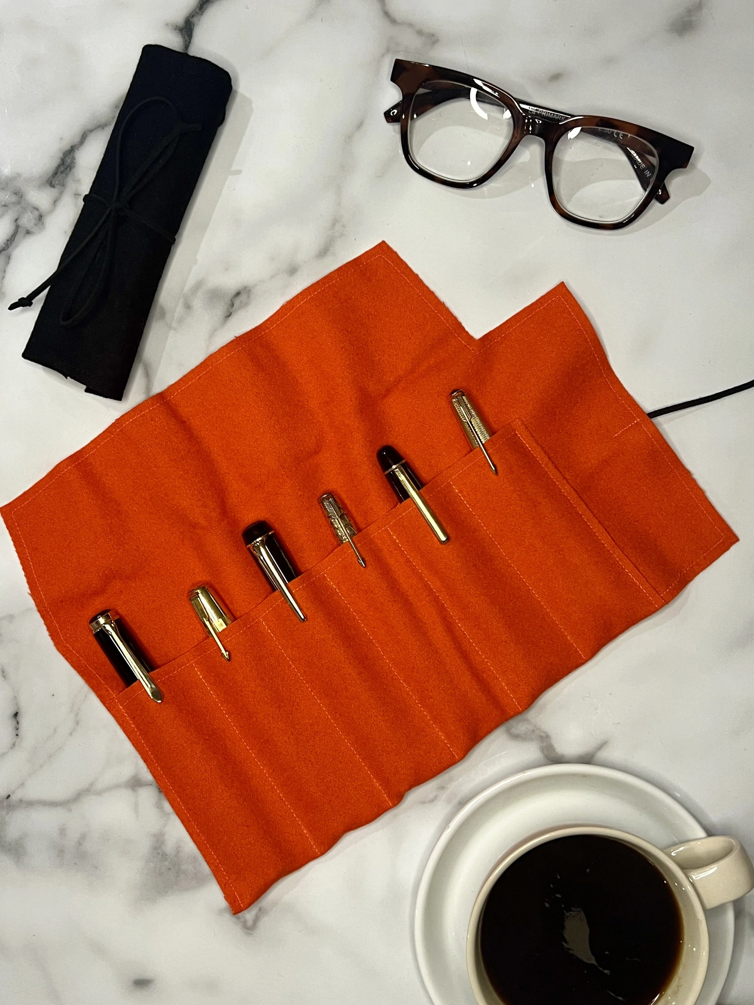 Hainsworth Merino Wool Six Pen Roll £25.00 Four Pen Roll - Black £20.00 Double Pen Pouch - Black £13.00 Single Pen Pouch - Black £10.00